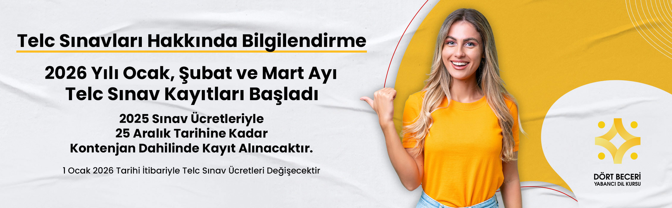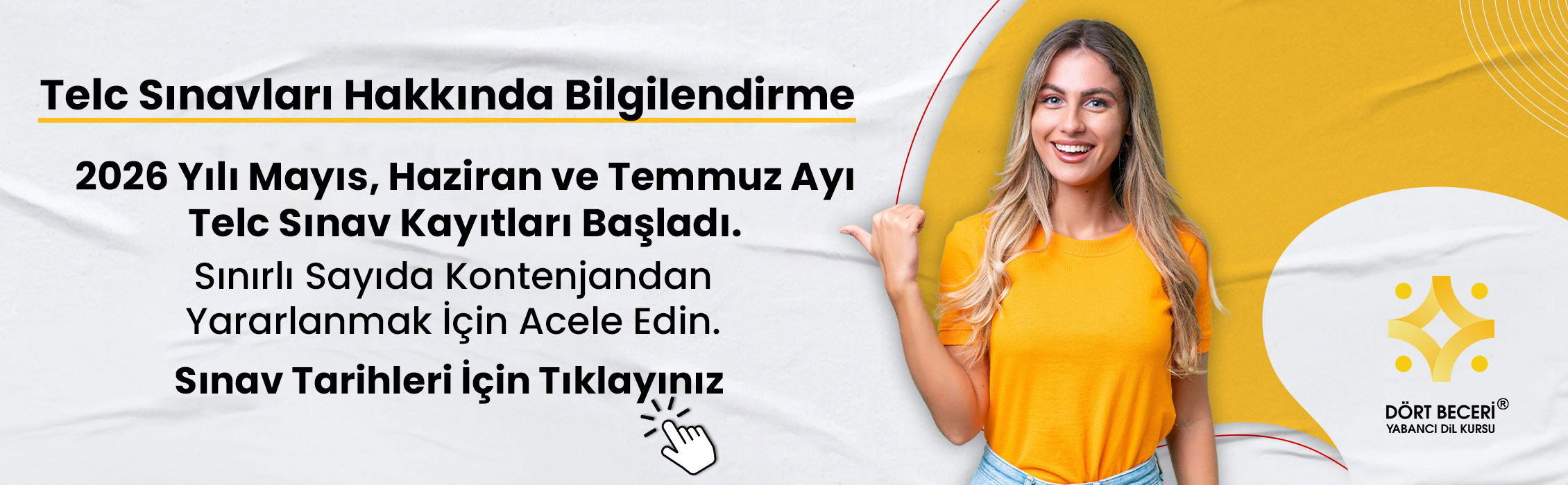 Dort beceri dil kursunda b2 telc sinavina girdim . Sinava 22 mayista girdim ve 5haziranda aciklandi. Herkese tavsiye ederim hocalar cok iyiler ve ilgililer sizin rahat olmaniz icin ellerinden gelen her seyi yapiyorlar. Herkese basarilar dilerim.